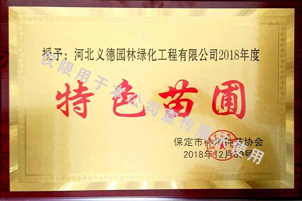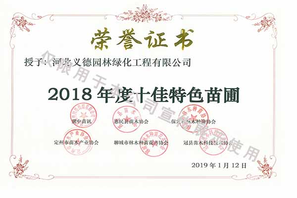 2018年度十佳特色苗圃證書(shū)